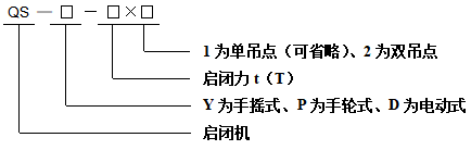 QS型启闭机可分为手盘式、手摇式、手电两用型;而手电两用启闭机又可分普通型和机电一体化型,其工作原理是手轮或电机带动推力螺母转动,在梯形螺纹作用下使丝杆带动闸门门体上下运行,达到启闭目的的。
