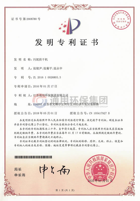 污泥烘干机发明专利