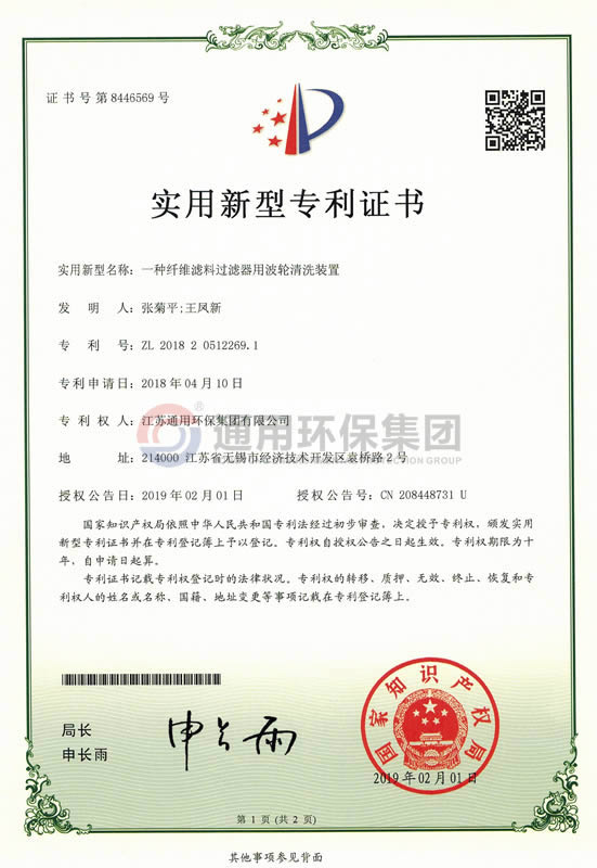 一种纤维滤料过滤器用波轮清洗装置实用新型专利