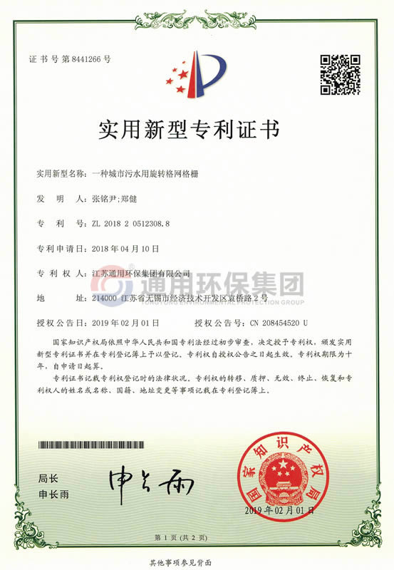 一种城市污水用旋转格网格栅实用新型专利