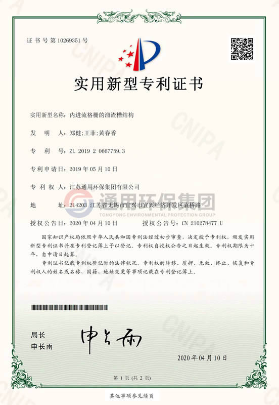 内进流格栅的溜渣槽结构实用新型专利