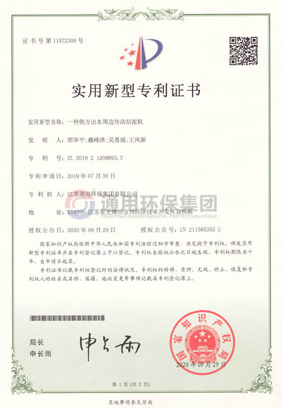 一种侧方出水周边传动刮泥机实用新型专利