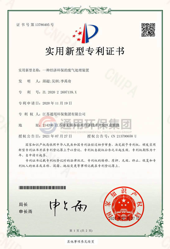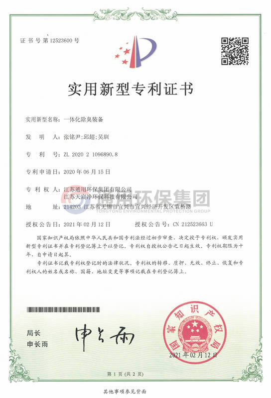 一体化除臭装备实用新型专利