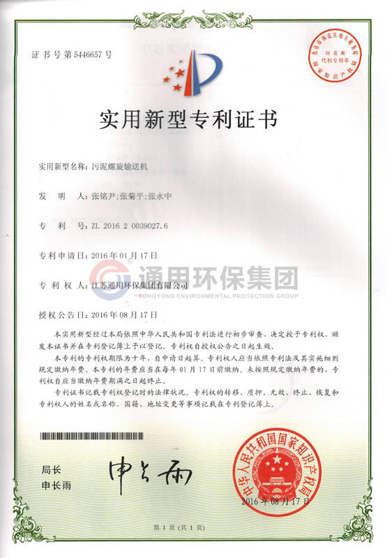 污泥螺旋输送机实用新型专利