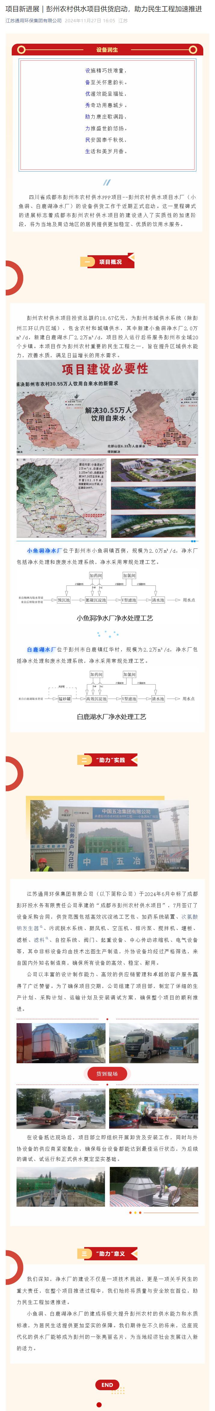 项目新进展|彭州农村供水项目供货启动,助力民生工程加速推进