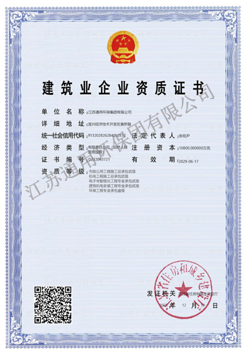 新征程·新跨越 | 热烈祝贺通用环保集团成功取得机电工程施工总承包贰级资质!