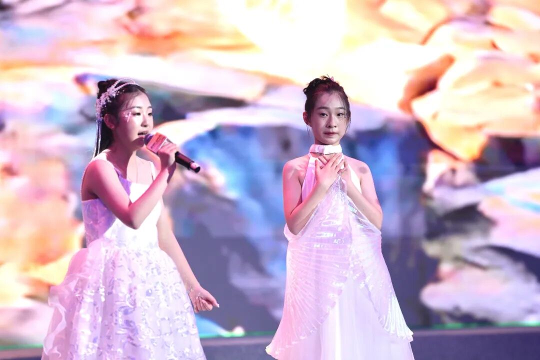 女生独唱《有形的翅膀》婉转悠扬,寓意着宜兴环保产业在一代代人的传承下,始终有前行的力量相伴。